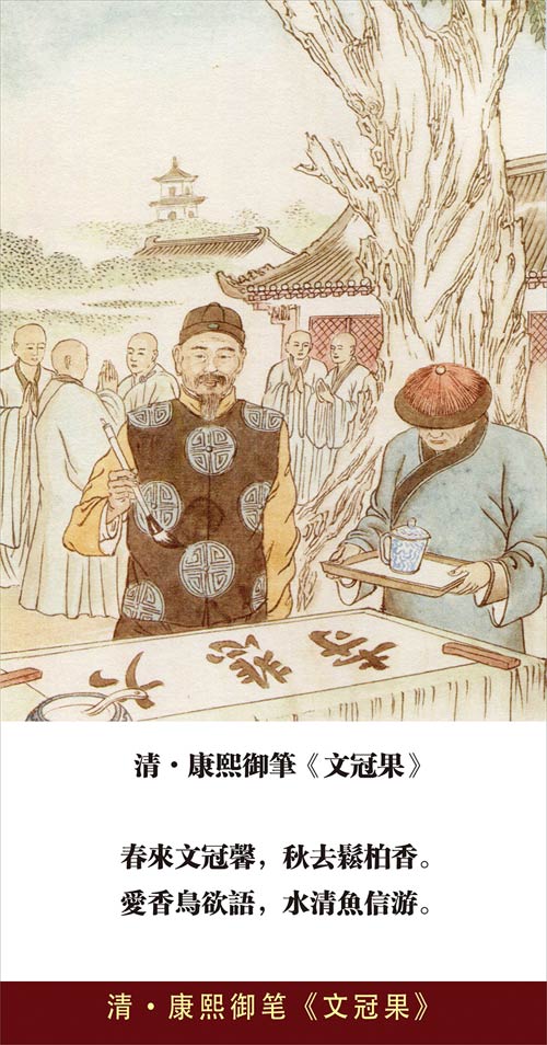春來文冠聲,秋去松柏香。 愛香鳥欲語,水清魚信游。